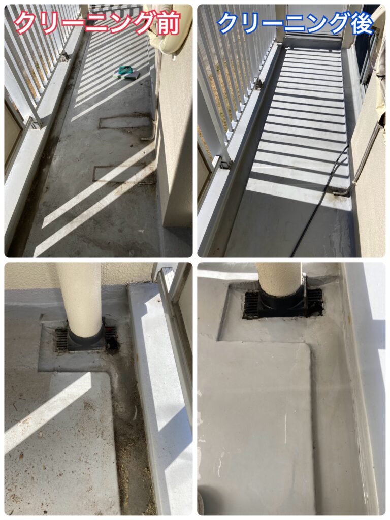 花粉や埃で窓やサッシ、ベランダは汚れておりました。
