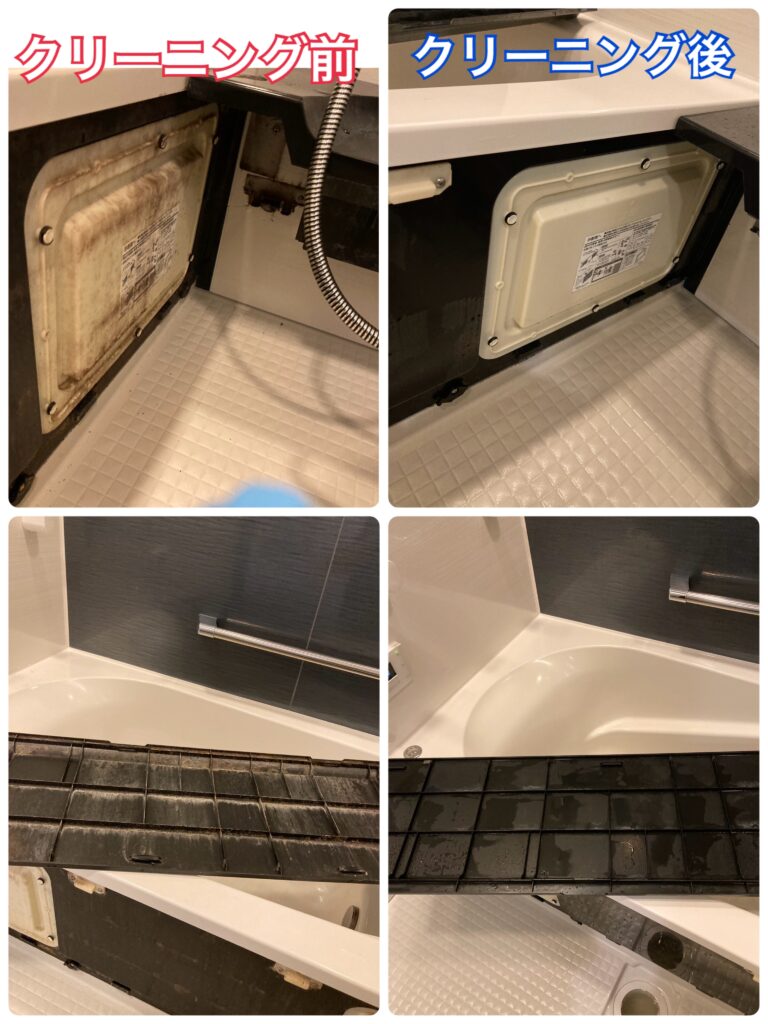 ※クリーニング箇所:エプロン内高圧洗浄、壁、天井、床、浴槽、扉、照明、鏡、水栓金具、シャワーヘッド&ホース、排水溝、窓(内側)、換気扇表面