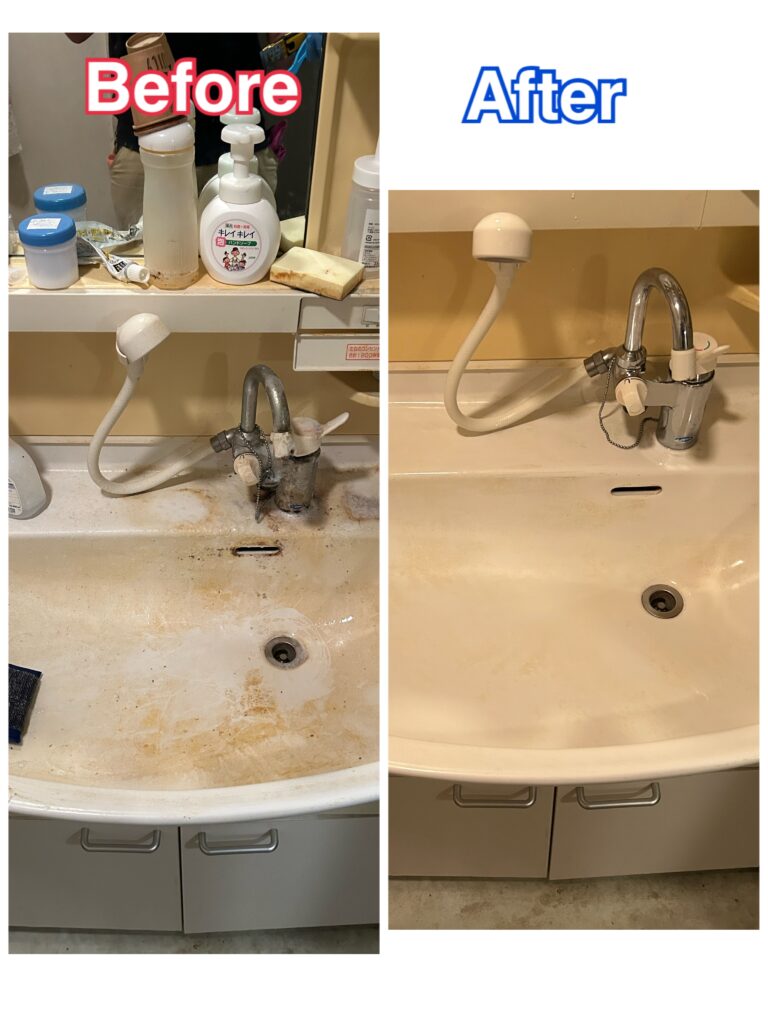 お風呂と同じく、水垢や石鹸かすがよく固着する場所です。こすってもなかなか落ちなくて諦めてしまう方が多いです。